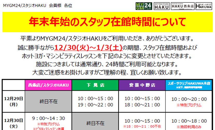 ※月によりスタッフ滞在時間が変更する場合がございます。